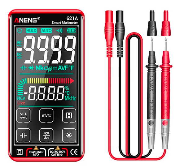 ANENG Multímetro Digital Inteligente, 621A, Tela Sensível Ao Toque, Transistor Tester, 9999 Contagens, True RMS, Alcance Automático, DC, AC, 10A Metro Capacimetro